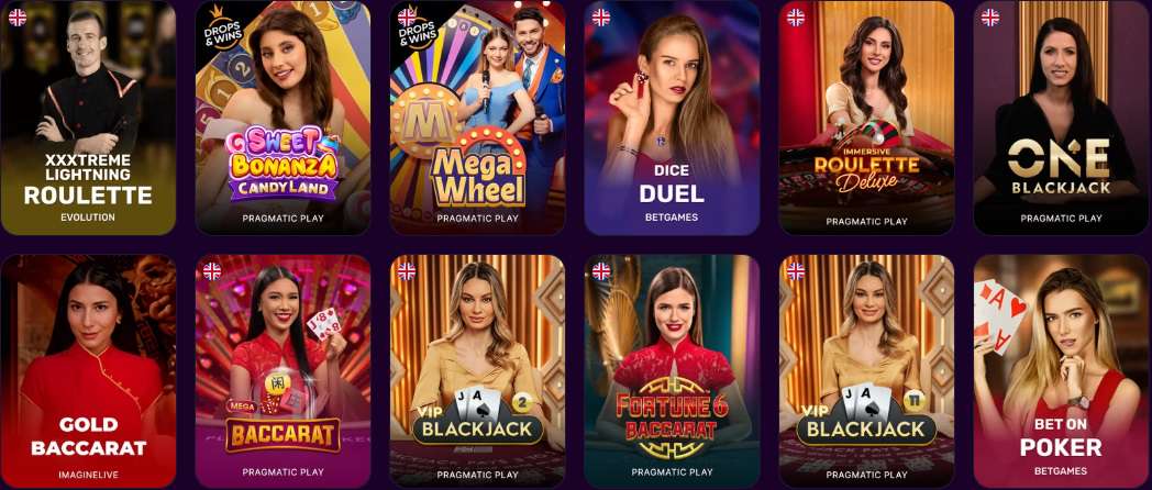 На платформе есть отдельная секция live-игр - атмосфера настоящего казино без необходимости покидать дом.